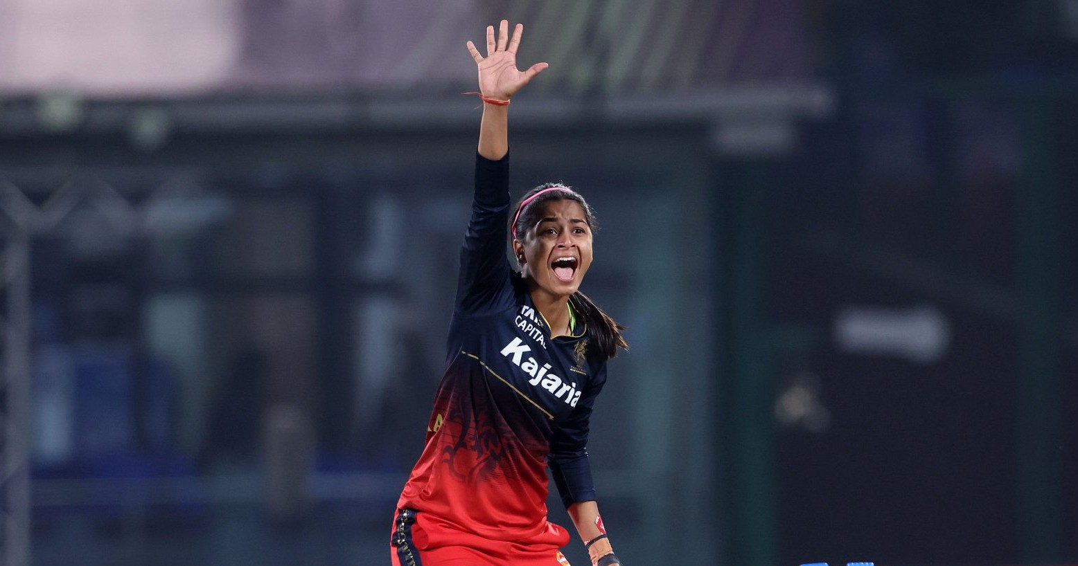 Shreyanka got her first wicket on the last ball of her first over when she trapped Beth Mooney LBW. She again trapped Kanika Ahuja LBW when Kanika tried to flick and missed the ball. Kashvee Gautam was caught off her bowling at long-on in her next over. She then removed Tanuja Kanwar and Renuka Singh in her final over to complete the five-wicket haul.